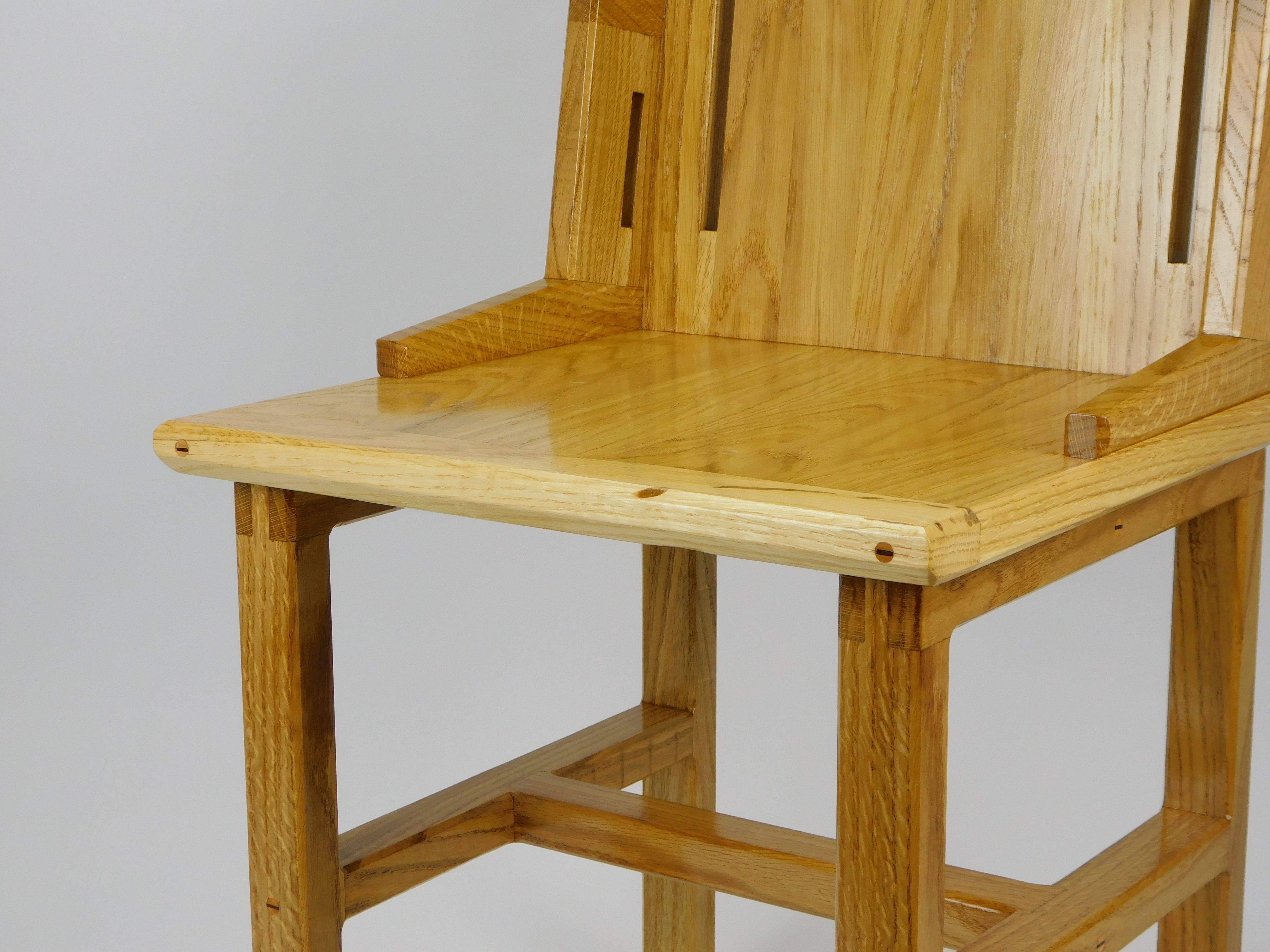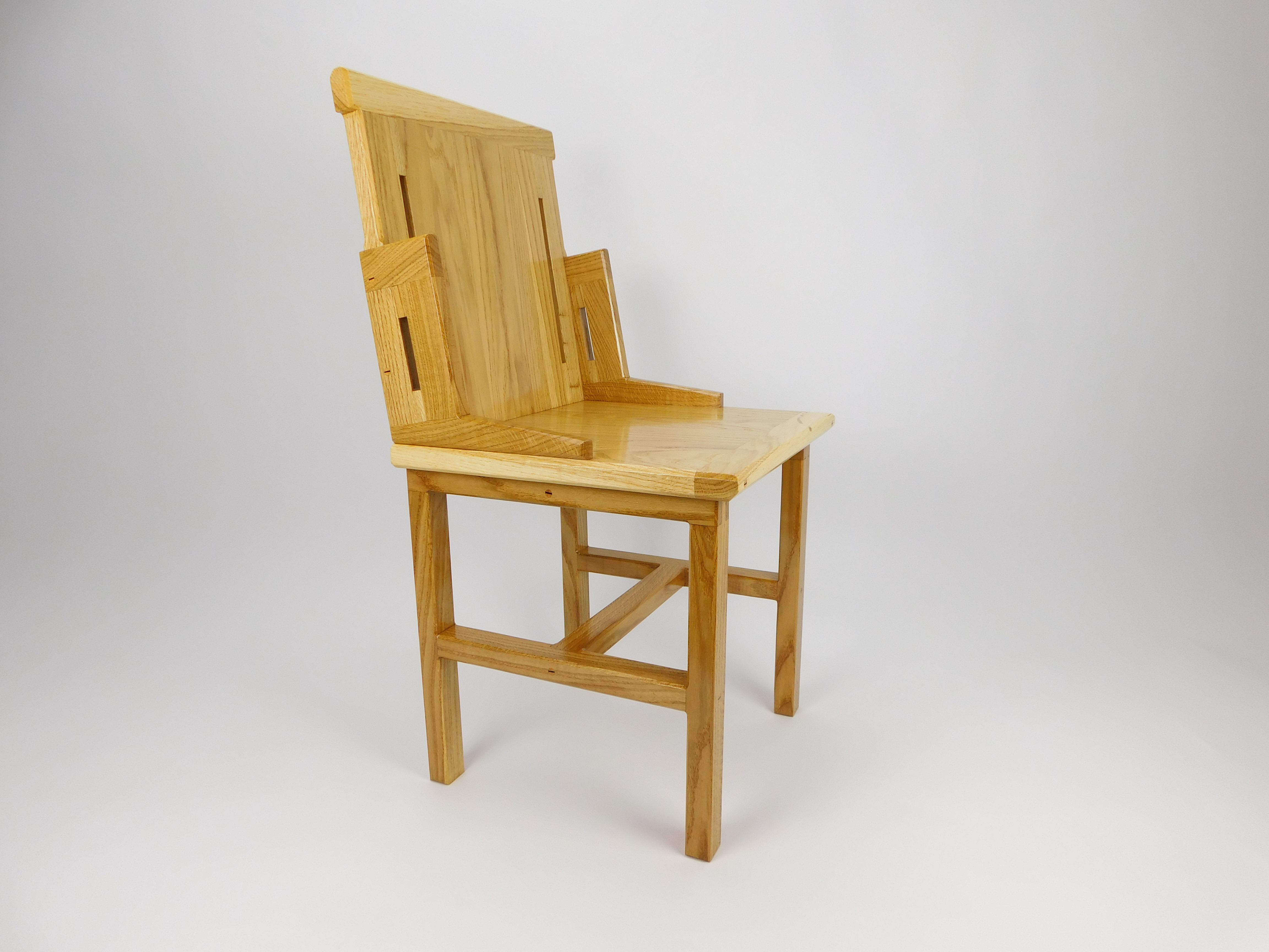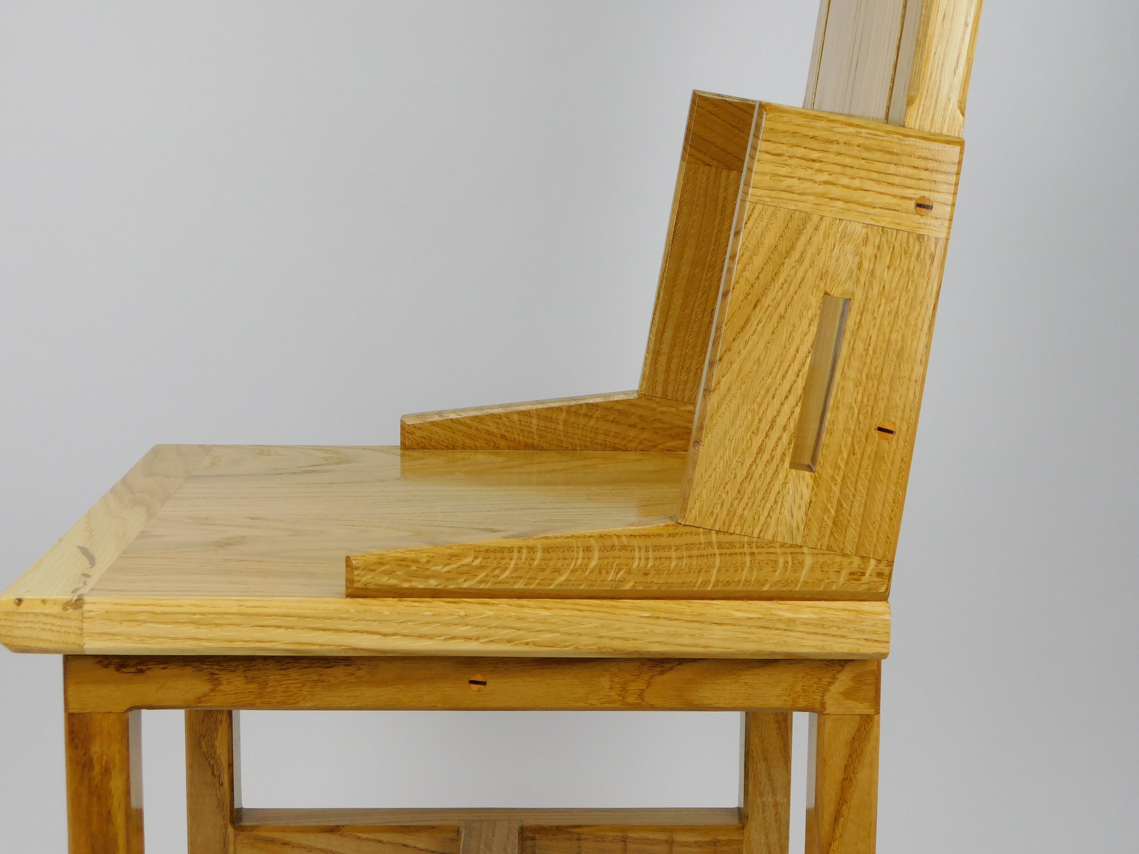 FurnitureThe chair presents itself entirely as a solid light oak wood construction, exuding natural warmth and simplicity. Its design is functional yet has subtle, artistic details.